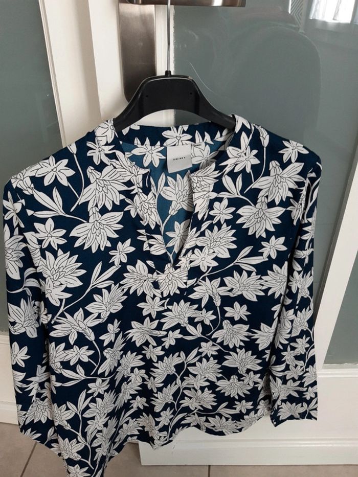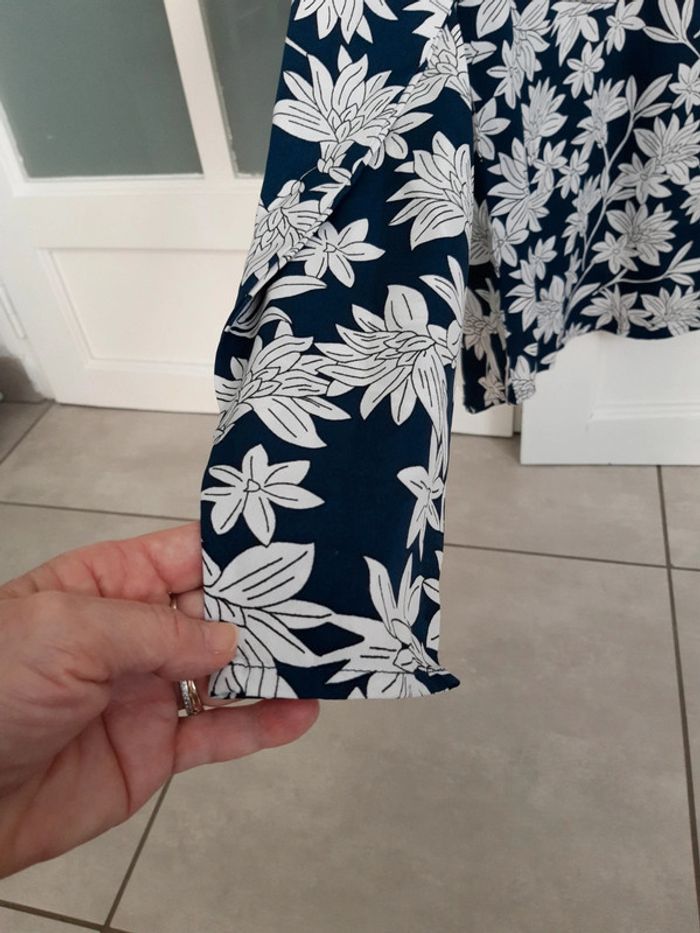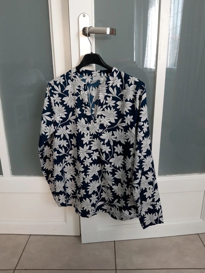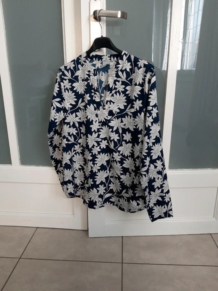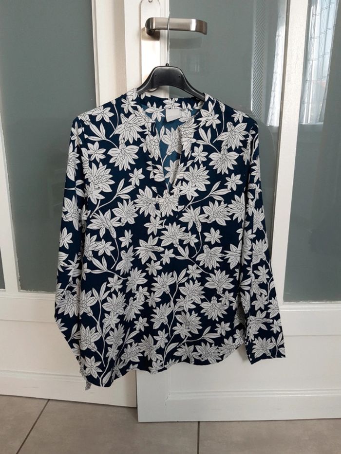 Blouse chic fluide bleue marine et blanche Taille 36 convient aussi à 38 Aisselles à aisselles 45 cm Longueur 63 cm #sevileano_blouses