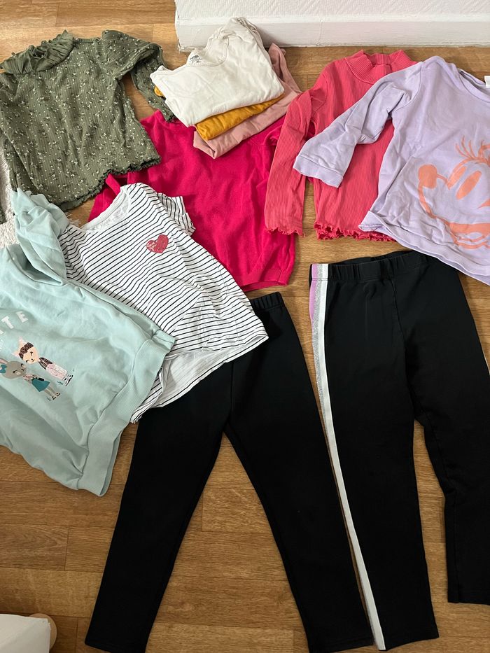 Lot vêtements fille 2 leggins épais 2 pull 3 sous pull 1 pull fin 1 t-shirt Le tout en très bon état Marque : vertbaudet kiabi lc waikiki Taille 5-6ans