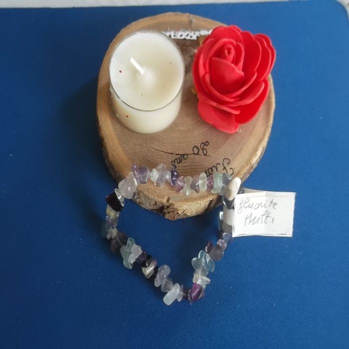 pour voir toute mes annonces bijoux tapez #pat62_bijoux 16cm/19cm bracelet baroque flurite multi neuf monté sur élastique La Fluorite, pierre qui aide à restructurer le corps et l'esprit. Elle est une précieuse alliée dans le domaine du sport, puisqu'elle favorise le tonus musculaire. Aussi, elle stimule l'esprit et la créativité et cette pierre est bien adaptée à ceux ayant un travail intellectuel ou artistique. Possibilité de l'associer ave mokaïte une sorte de jaspe appartenat à la famille des quartz, dont la couleur va du brun foncé au brun clair, parfois avec des inclusions blanc-beige ou jaunâtre. ° Cette variété de jaspe, favorise la souplesse mentale et nous aide à envisager le changement avec sérénité. ° Aide en cas de problème de peau. ° Amène le désire de tenter de nouvelles expériences. ° Stimule la souplesse.c une autre fluorite en pendentif ou en collier..
