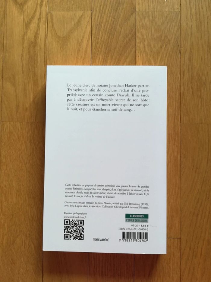 Vends livre neuf "Dracula" de Bram Stoker. Collection "Classiques, l'école des loisirs" (texte abrégé). Je vends également d'autres livres : #livresV92B Prix de vente : 5 € À récupérer à Boulogne Billancourt/La Défense. Envoi possible.