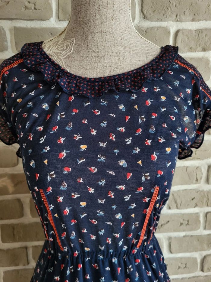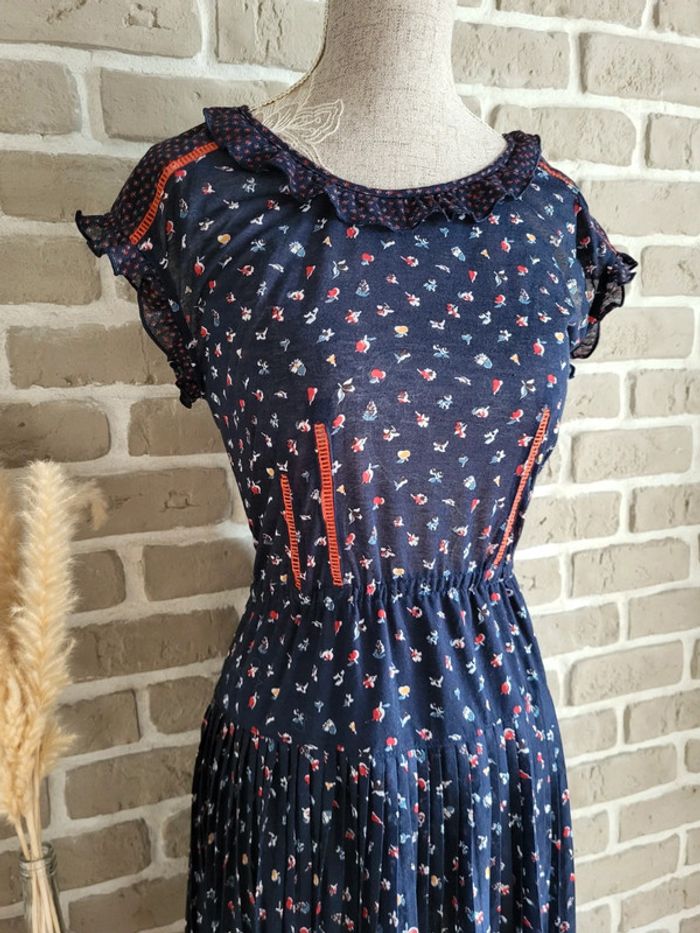 Robe Mango - Esprit rétro - bleu marine imprimé fleuri - photo numéro 1