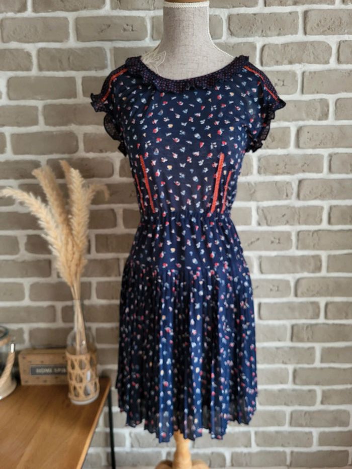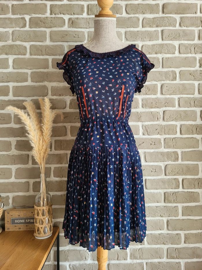 💝 Bénéficiez d'une réduction en créant lot dans mon dressing 🛍️ 🌸 Jolie robe Mango en très bon état, sans défaut 🎀 Matière fluide et très agréable à porter de couleur bleu marine avec un imprimé petites fleurs 🩷 Issue d'une ancienne collection de la marque, cette robe ravira les amateurs de mode un peu rétro sportswear 🪷 Coupe cintrée avec une partie jupe plissée et doublée donnant beaucoup d'allure à la silhouette Volants aux épaules et au col Détails de couture dans les tons corail pour un effet contrasté Ouverture à l'arrière par un petit bouton dans la nuque 🍥 Taille S 36 Longueur : 82 cm
