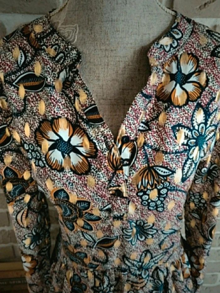Robe fluide imprimé fleuri et doré Lilie Rose M 38 - photo numéro 3