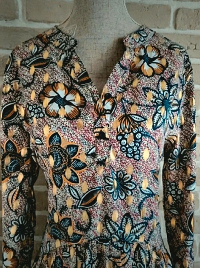 Robe fluide imprimé fleuri et doré Lilie Rose M 38 - photo numéro 2