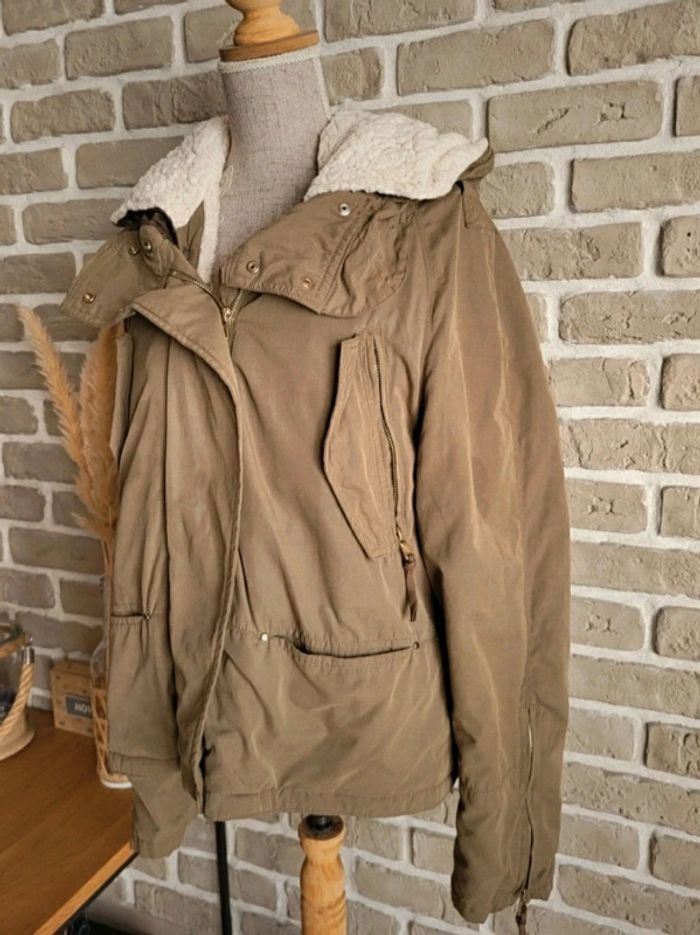 Blouson parka Zara kaki doublure moumoute mouton amovible S 36