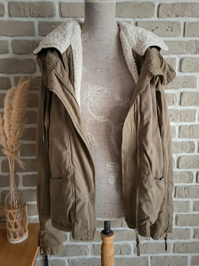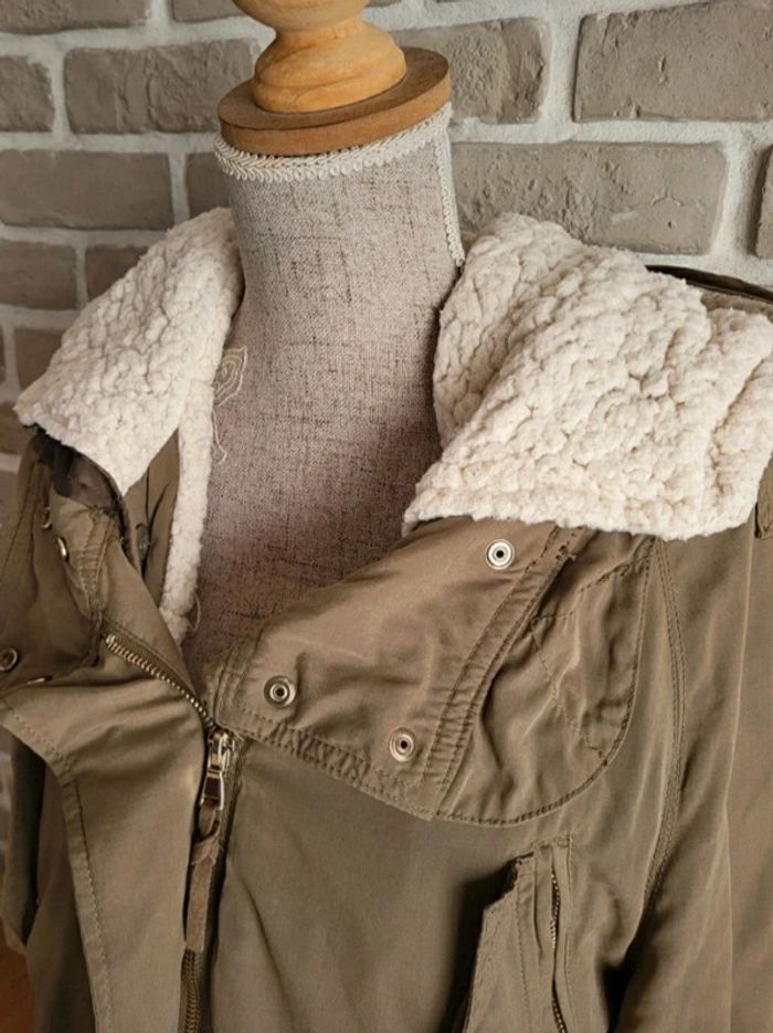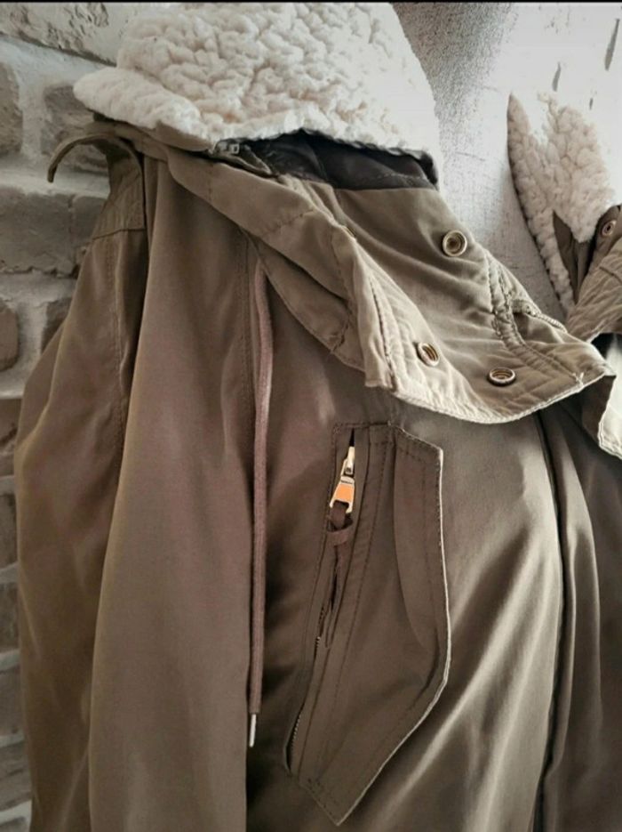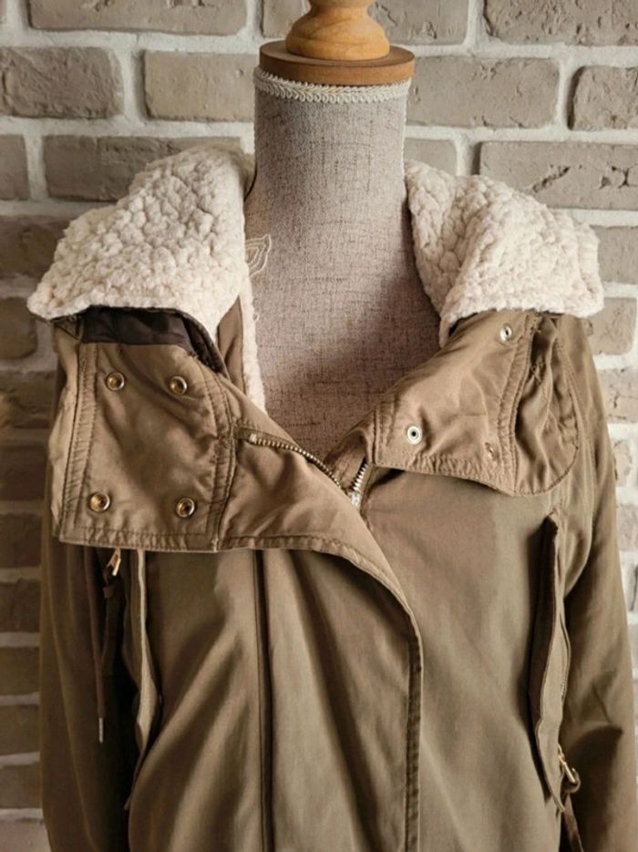 Blouson parka Zara kaki doublure moumoute mouton amovible S 36 - photo numéro 3