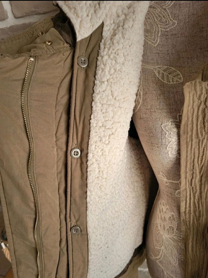 Blouson parka Zara kaki doublure moumoute mouton amovible S 36 - photo numéro 5