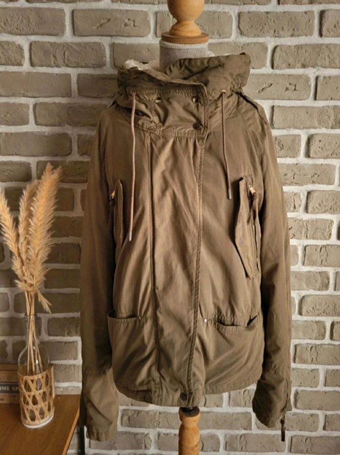 Blouson parka Zara kaki doublure moumoute mouton amovible S 36 - photo numéro 1