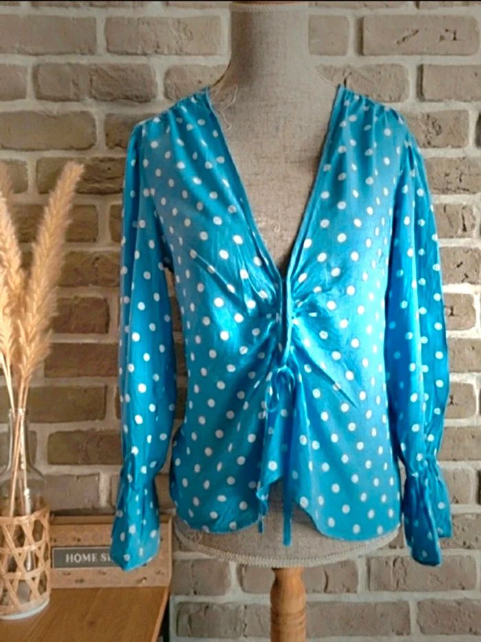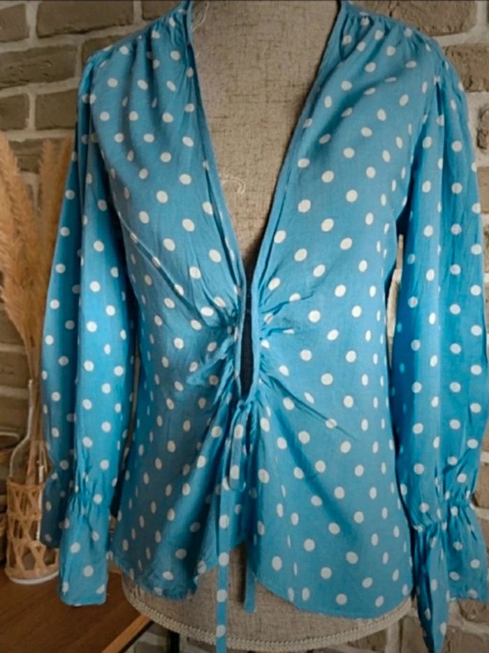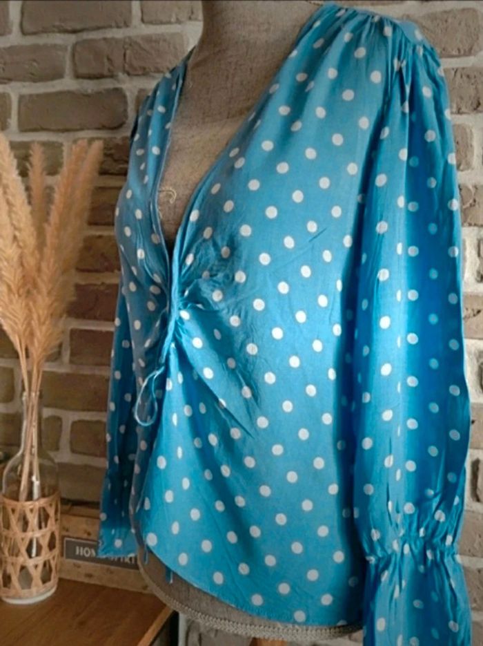 Blouse Mango bleu clair à pois blanc S 36 - photo numéro 6