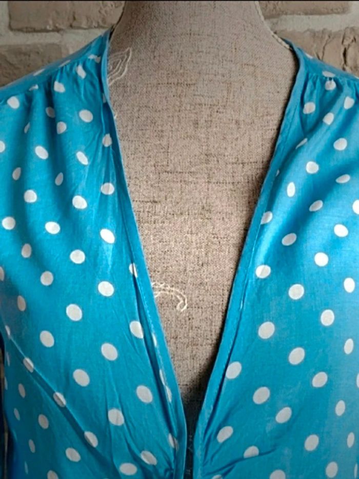 Blouse Mango bleu clair à pois blanc S 36 - photo numéro 8