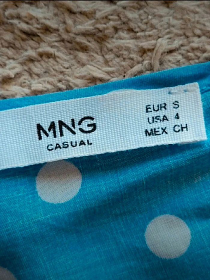 Blouse Mango bleu clair à pois blanc S 36 - photo numéro 1