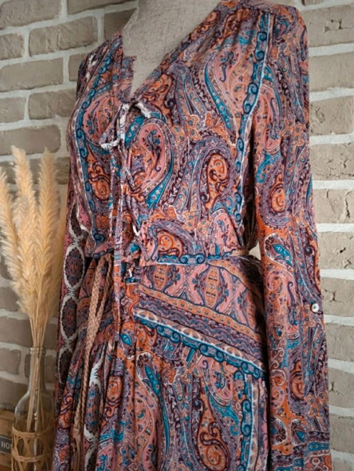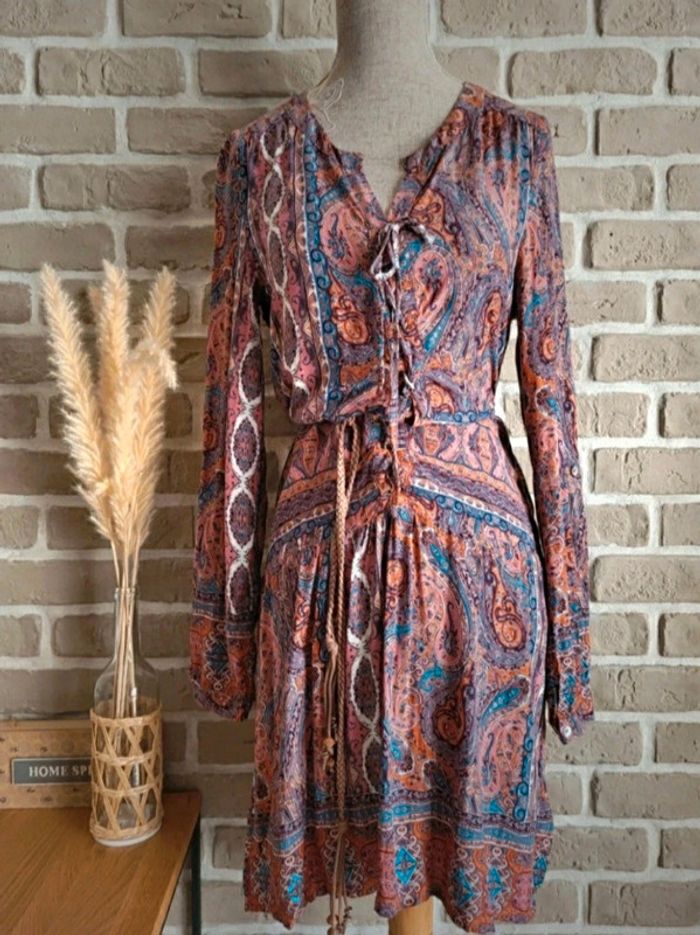 . Robe de La Redoute en très bon état, aucun défaut . Matière légère et fluide avec un imprimé foulard, style Isabelle Marant, dans les tons bleu rose violet et rehaussé de prune . Laçage sur le devant . Manches longues qui peuvent se retrousser à l'aide d'un bouton en nacre . Très jolie avec une ceinture (non incluse) . Taille XS 34 🌸 Et si vous alliez faire un tour dans dressing ? Les réductions sur les lots sont activées 🩷 Bohème Hippie Féminin