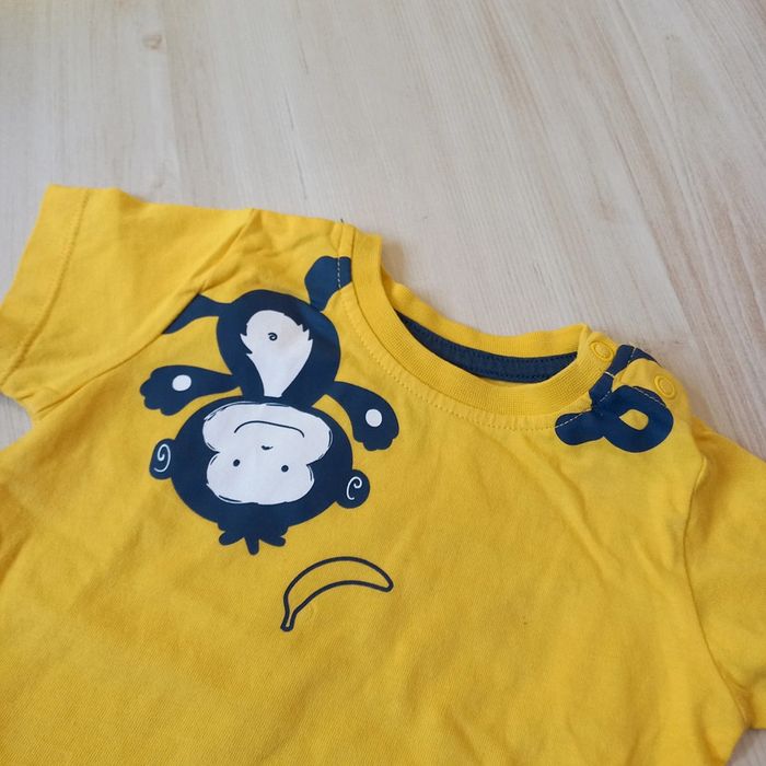Tee shirt jaune motif petit singe bleu marine Lupilu Taille 6 mois