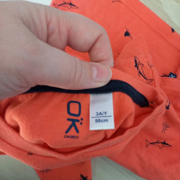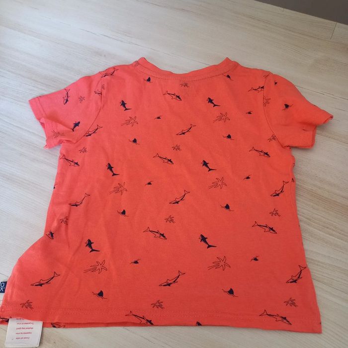 Tee shirt corail à motifs requins et palmiers Très bon état Okaidi Taille 3 ans