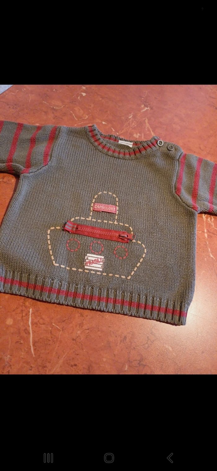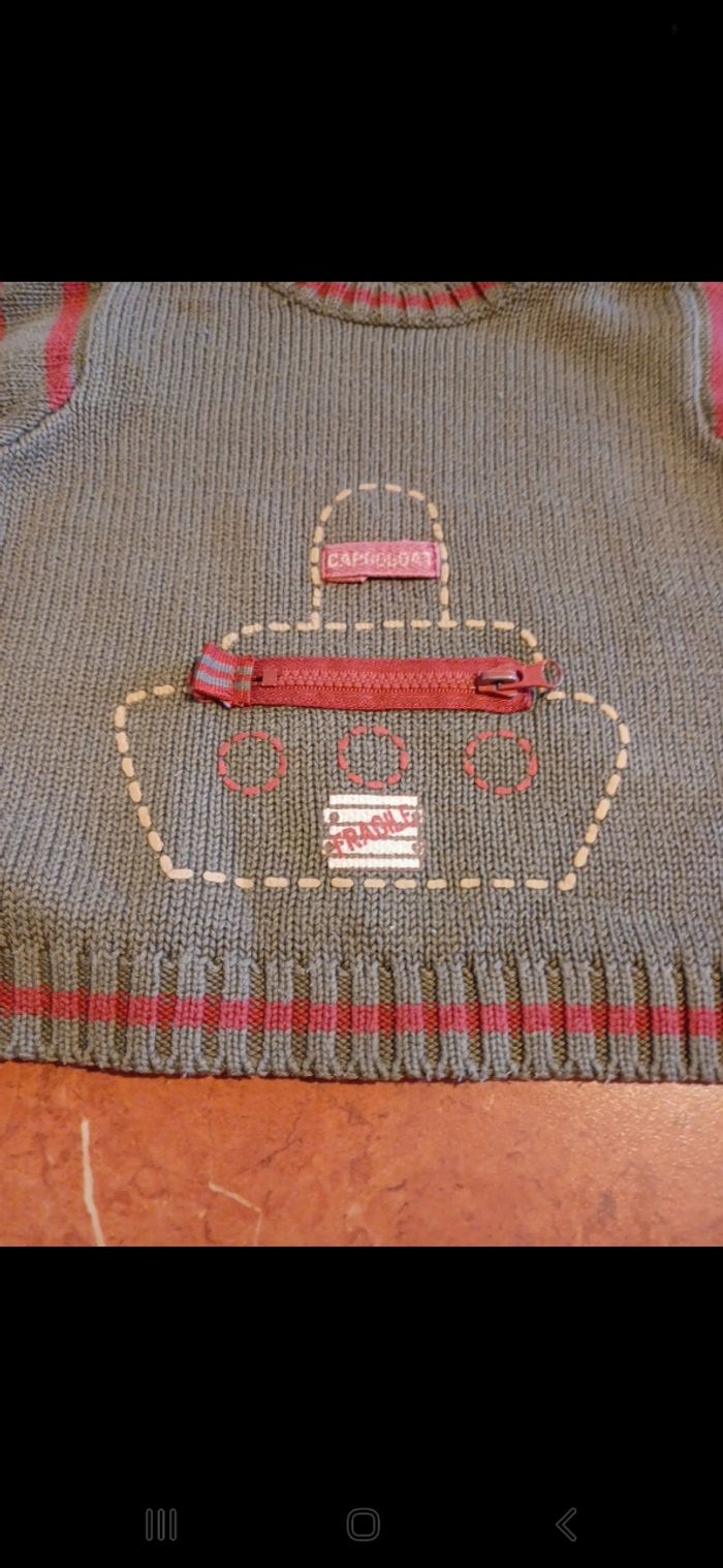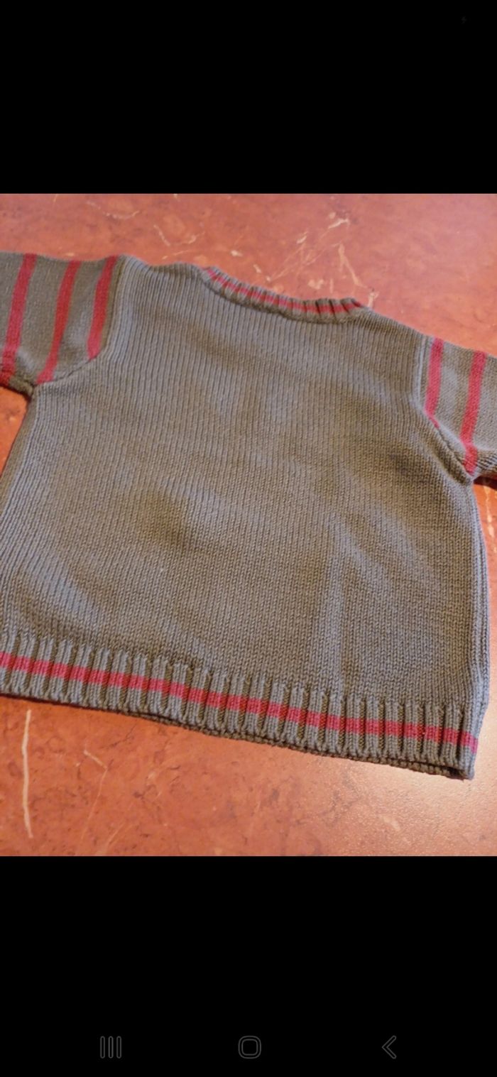 Pull boutonné à l encolure et motif à l avant. En très bon état