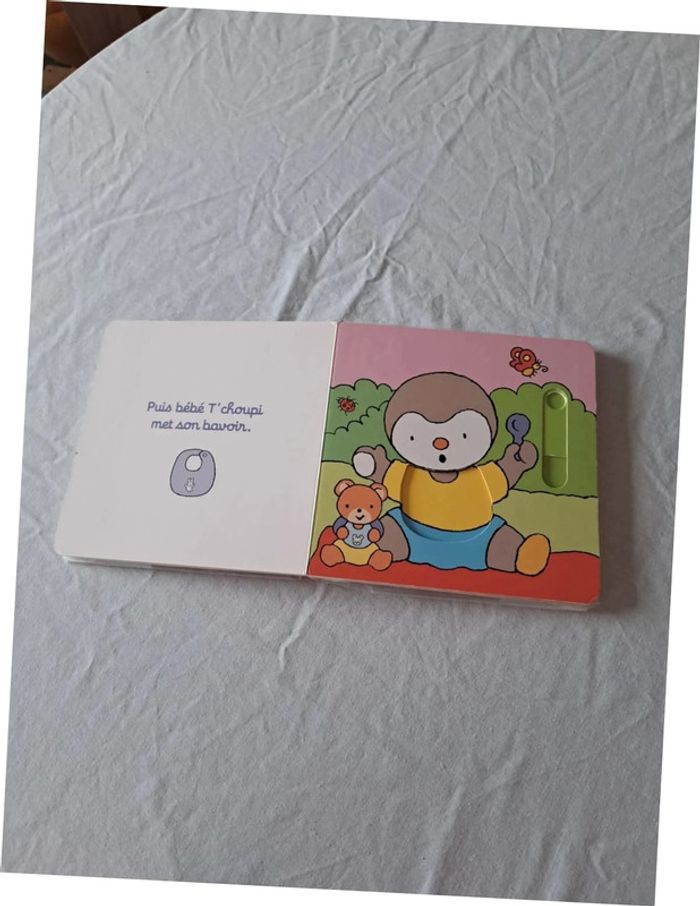 Bebe T'choupi le Goûter mes livres animés Nathan. Livre utilisé mais sans taches ni déchirures avec plein de mouvements à faire, tire, pousse, tourne...