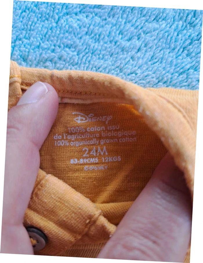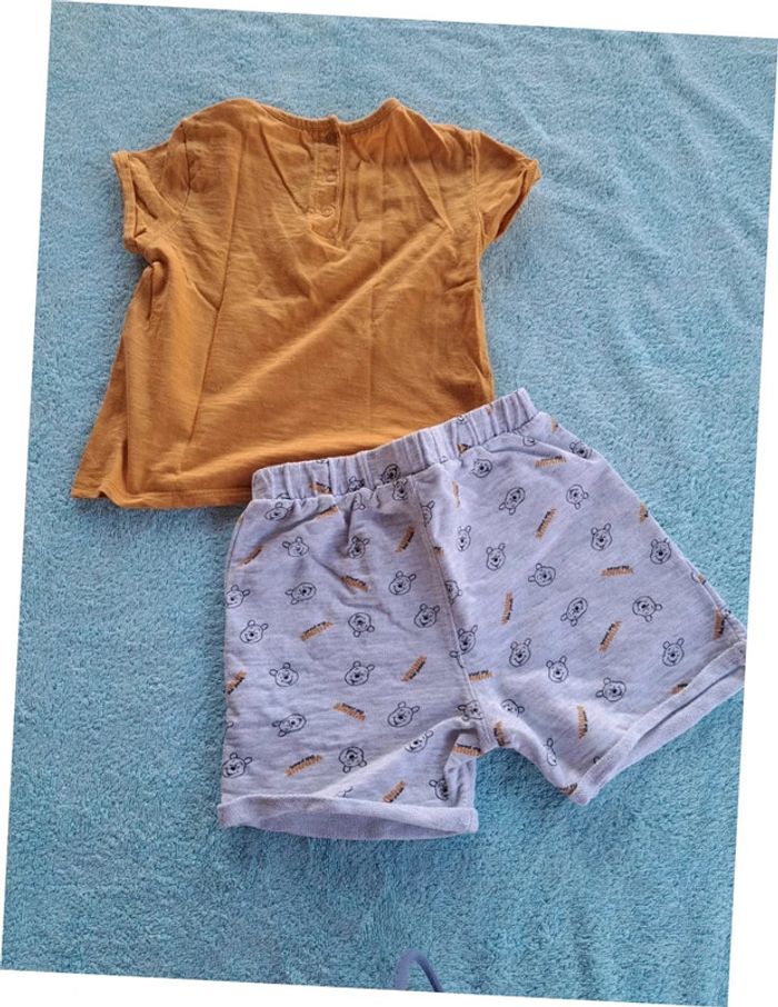 Ensemble Disney Winnie L'ourson 24 mois T-shirt Short. Couleur moutarde et gris avec des pressions à l'arrière pour plus de facilité à l'habillage. Coon issu de l'agriculture biologique.