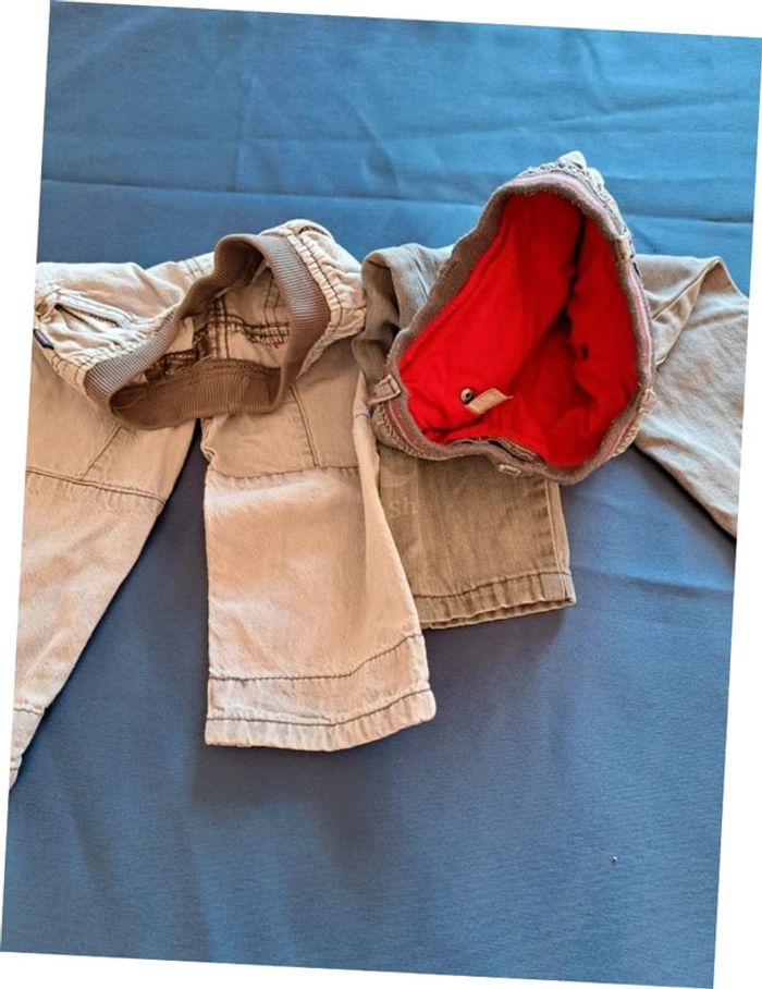 Lot de 2 jeans gris orchestra baby boy 18 mois. Ceinture elastique et matière souple imitation jean en polyester, l'un simple et l'autre double