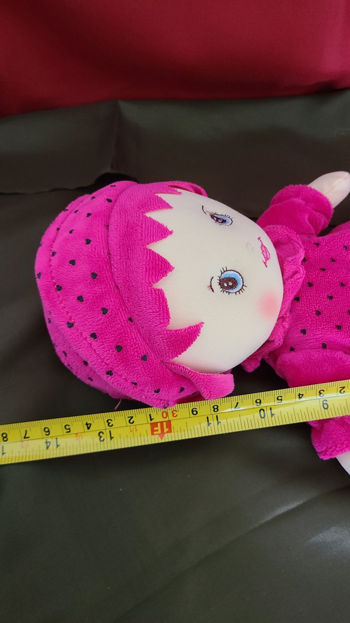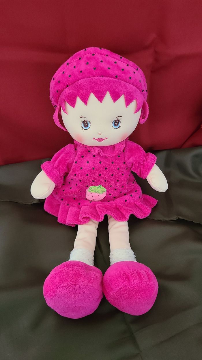 Poupée chiffon en robe et chapeau en velours rose - photo numéro 2