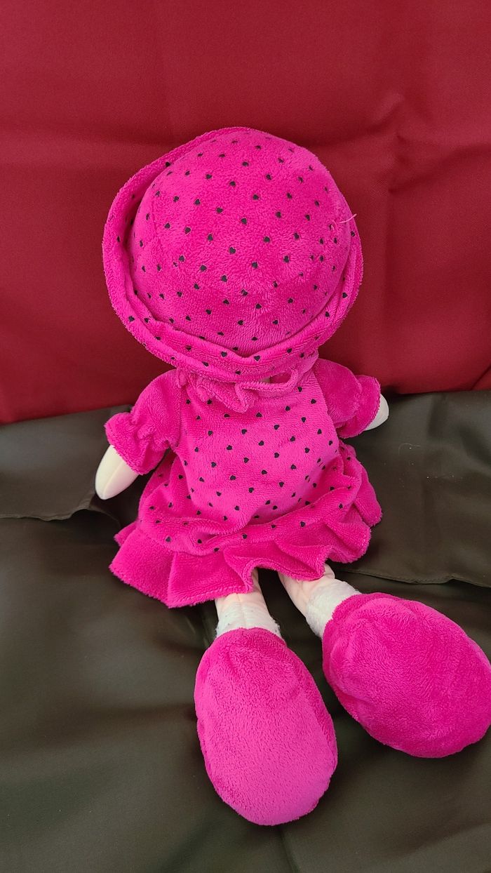 Poupée chiffon en robe et chapeau en velours rose - photo numéro 3