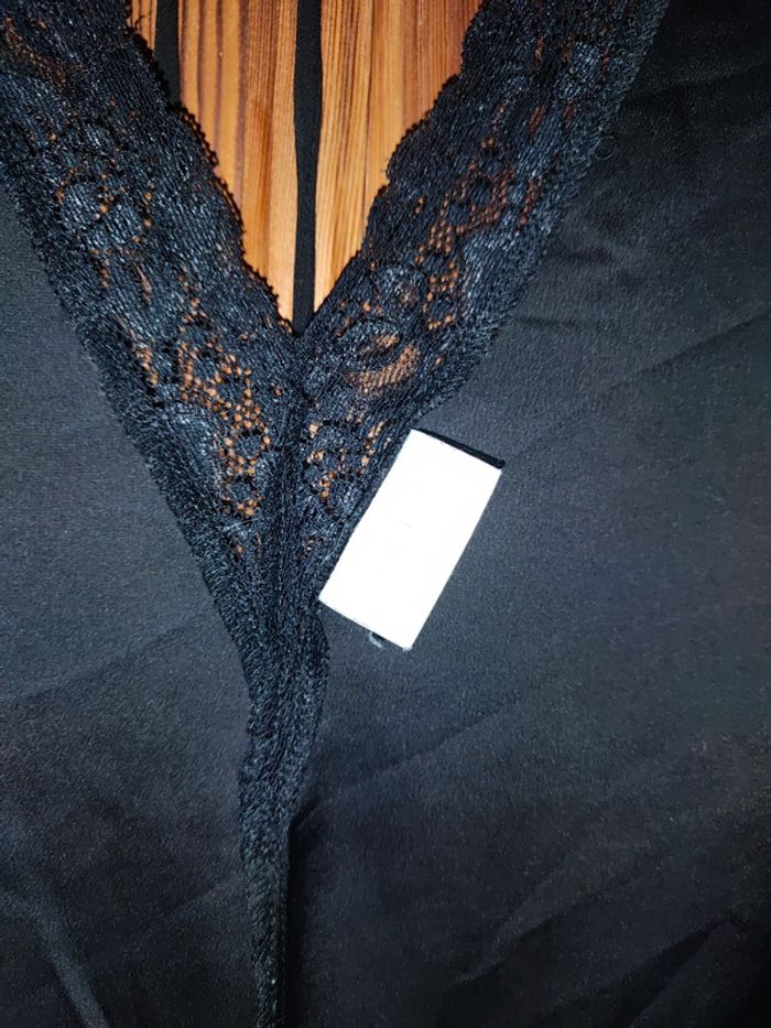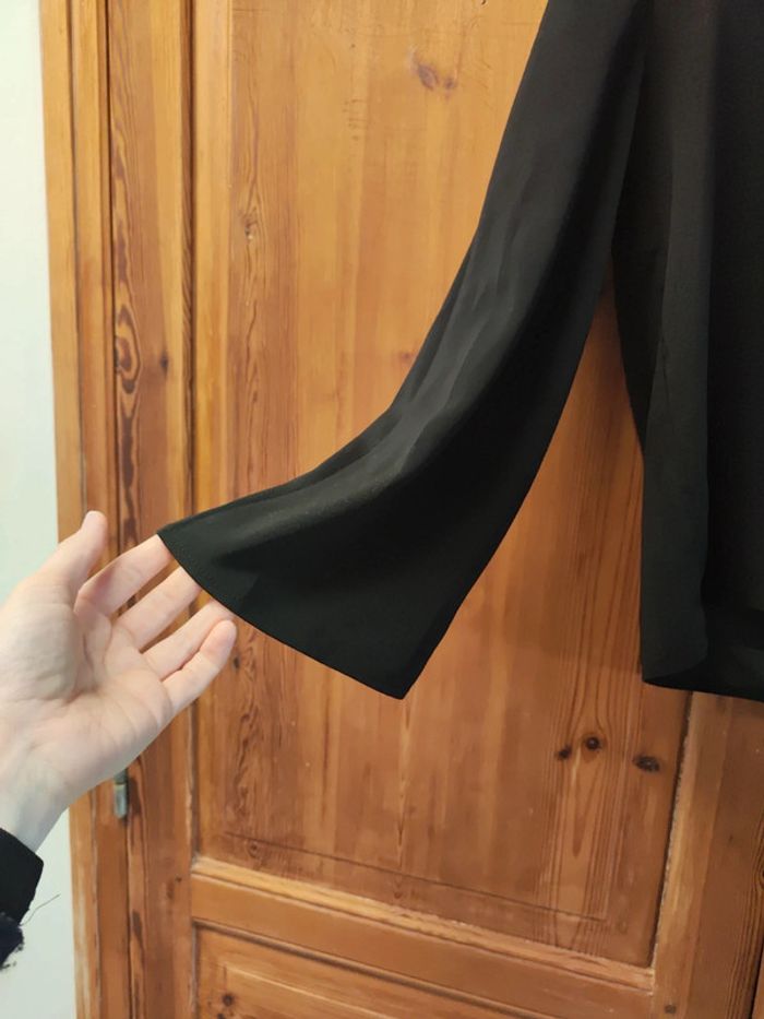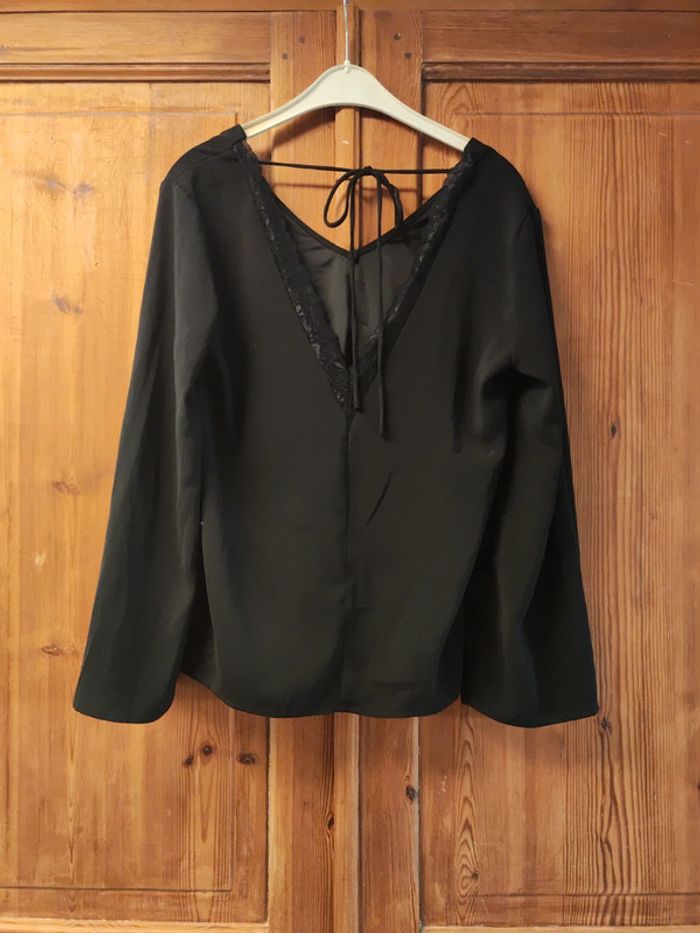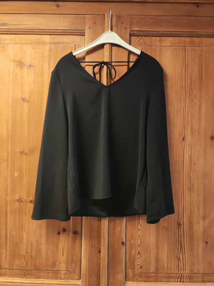Blouse noire marque Vila taille 38, manche large, col dans le dos en V avec dentelle