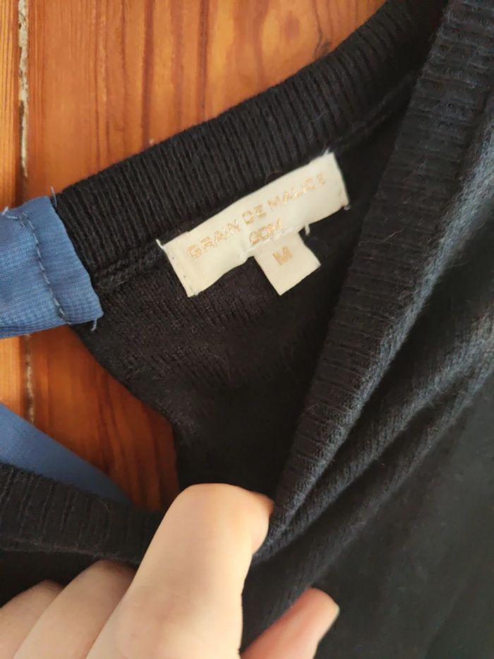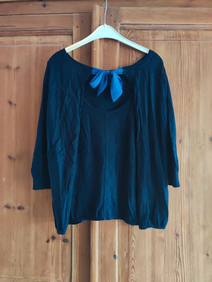 Pull bleu marine nœud dans le dos large oversize marque grain de malice taille M Manche 3/4