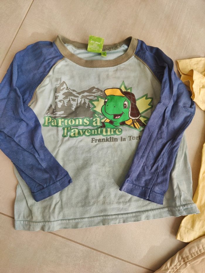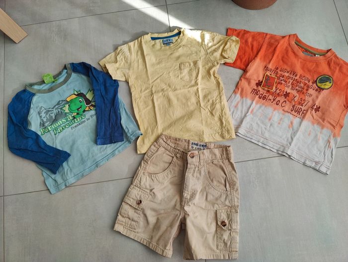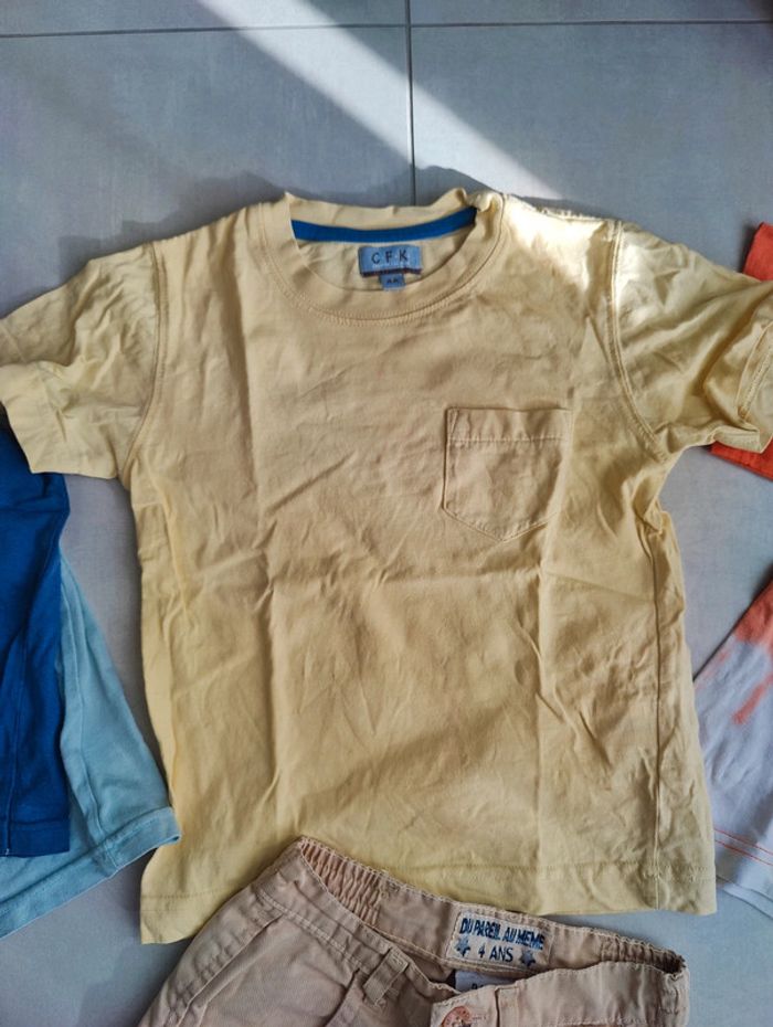 Lot de 4 habits garçon en 4 ans Marques Franklin, DPAM, CFK Portés mais encore en très bon état, il y a des petites marques de décoloration sur certains endroits d'où le petit prix auquel je vends le lot.