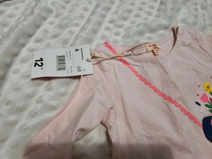 DPAM T-shirt manches longues Rose, avec jolis motifs Taille 6Mois/68cm Neuf avec étiquette 🏷
