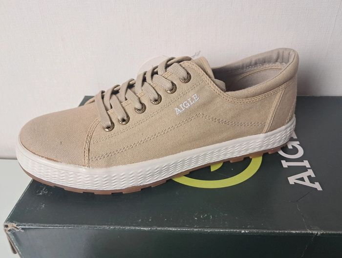Aigle très jolie paire de chaussures baskets en toile, neuves jamais portées dans la boîte d'origine Pointure 45 Dans la même catégorie cliquez ici: #collectionsephemereschaussures45 D'autres articles en ligne me contacter pour un achat groupé