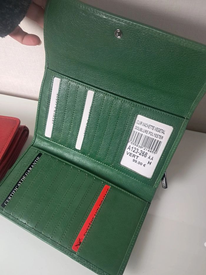 Couleur au choix, ATTENTION un seul portefeuille. Vous indiquerez la couleur de votre choix lors de l'achat Arthur & Aston très joli portefeuille porte-monnaie en cuir de vachette neuf avec étiquette ( val. 99 euros ) Au choix, seulement un: couleur rouge ou vert Dimensions en photos Possède plusieurs sac à main assorti Dans la même categorie cliquez ici: #collectionsephemeresmaroquinerie D'autres articles en ligne, possibilité d'achat en lot Pas de réservation