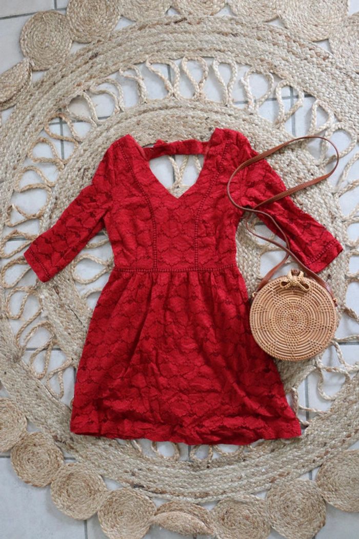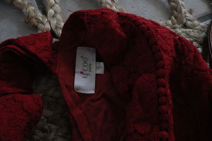 Robe en dentelle rouge Ycoo Paris. Nœud et ouverture dans le dos. Fermeture sur le côté. Entièrement doublée sauf les manches qui sont 3/4. Taille S. Très peu portée, parfait état. Vendue car devenue trop petite pour moi. Les lots sont ouverts jusqu'à -50 % sur mon dressing alors n'hésitez pas 😉. #roberougedentelle36 #roberougeycoo #roberougeété #robedentelleété #robeycoo36 #robeété
