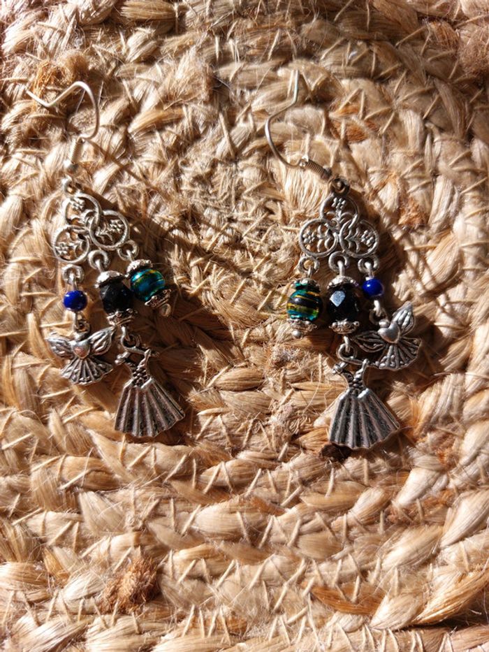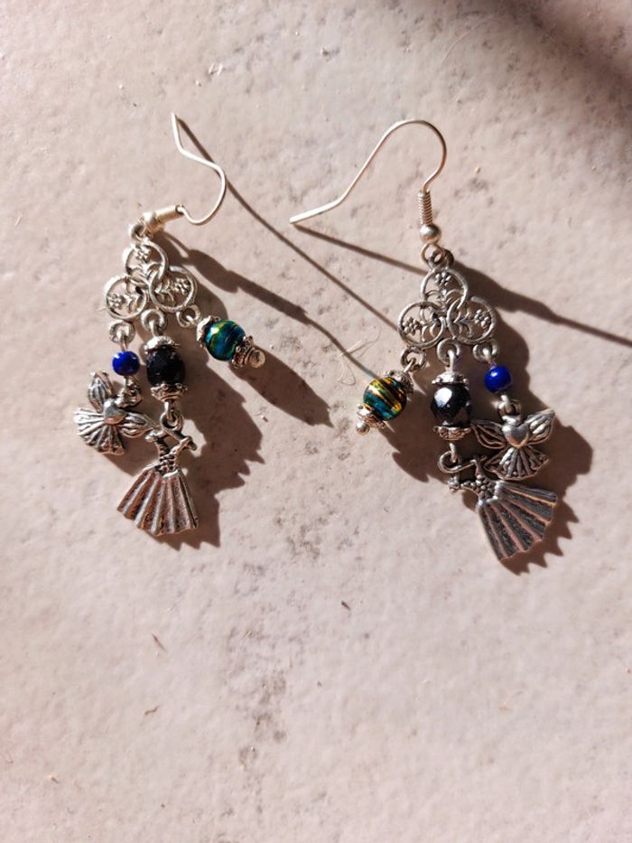 Boucles d'oreilles artisanales sur mesure. Pièce unique. Très peu portées. Achetées 15€ sur un marché de Noël. Les lots sont ouverts jusqu'à -50 % sur mon dressing alors n'hésitez pas 😉. #bouclesdoreillespendantes #bouclesdoreillesfantaisie #bouclesdoreillesfaitmain #bouclesdoreillesdanse