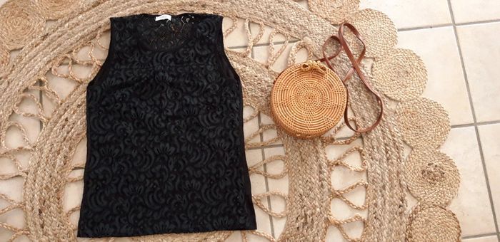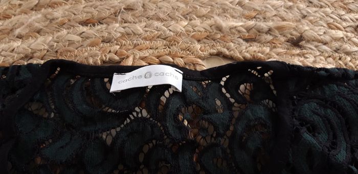 Tee-shirt dentelle vert et noir Cache Cache. Taille 2. Jamais porté. Dos en voile mais pas transparent. Les lots sont ouverts jusqu'à -50 % sur mon dressing alors n'hésitez pas 😉. #teeshirtdentelle #teeshirtvertetnoir #teeshirtcachecache