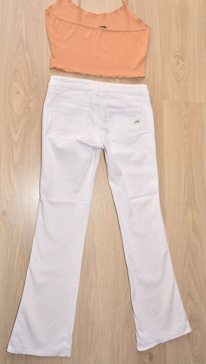 jean droit taille basse blanc uni taille 34 mensuration au niveau de la taille 34,5cm hanche 37 cm entre jambe 21,5 cm cuisse 22 cm longueur 87 cm largeur du bas 21,5 cm