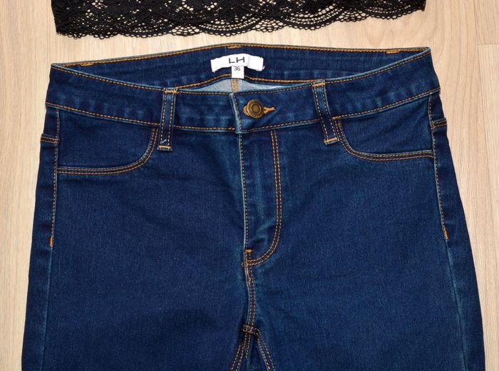 pantacourt jean bleu marine uni taille 34 taille basse - photo numéro 2