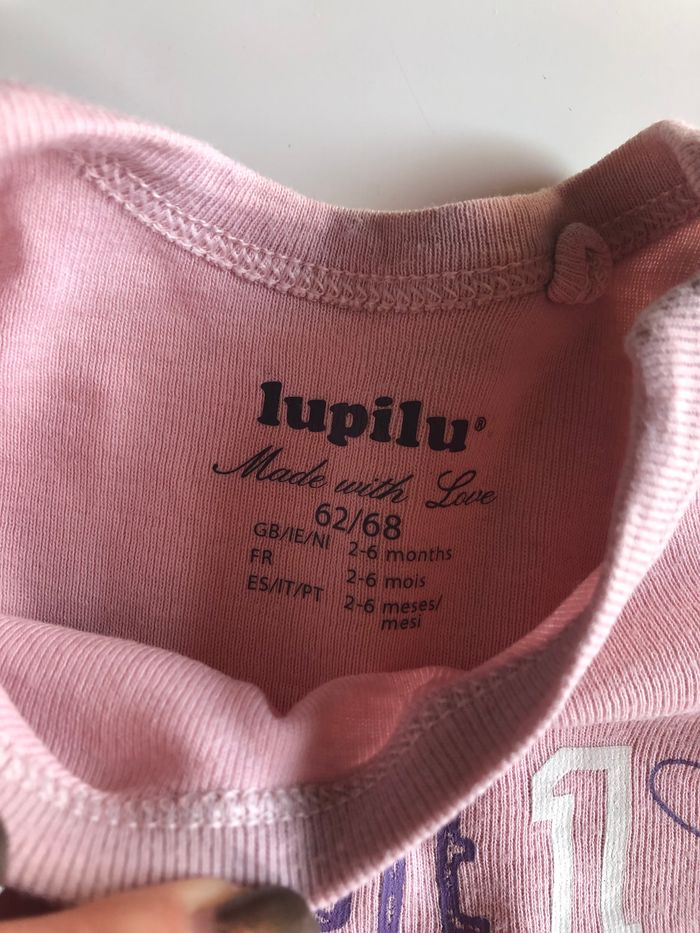 Lot de 2 bodies manches longues bébé fille Marque Lupilu Taille 2/6 mois - 62/68cm