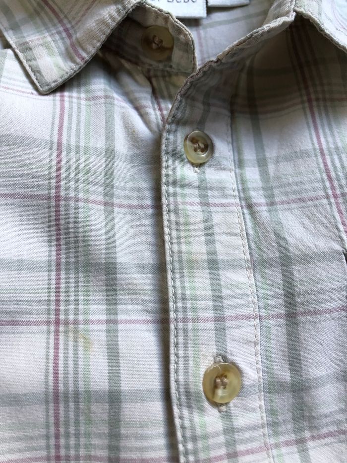 Chemise écossaise beige verte et framboise Taille 18 mois 2 petites tâches, voir dernières photos kiabi