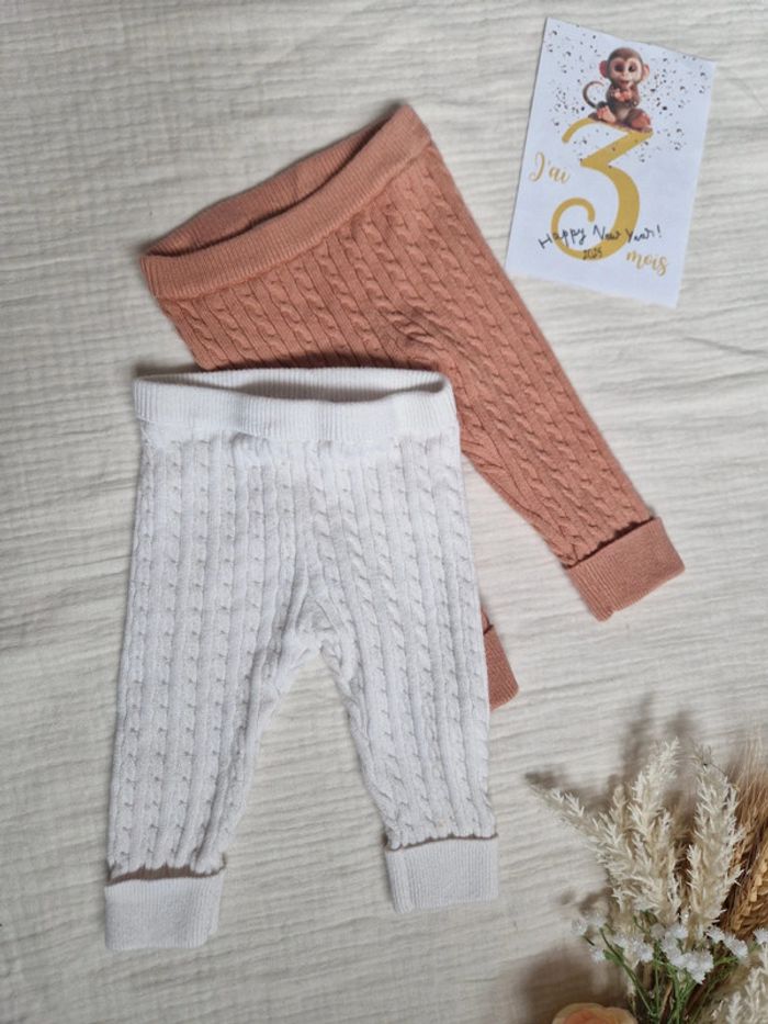 Lot de 2 leggings en laine La blanc à été mis 2 fois le rose a juste été laver. Dressing trié par taille et type d’article. Retrouvez tout sur mon profil via le lien ou ici pour tout le 3 mois : #bebe3moisjh49