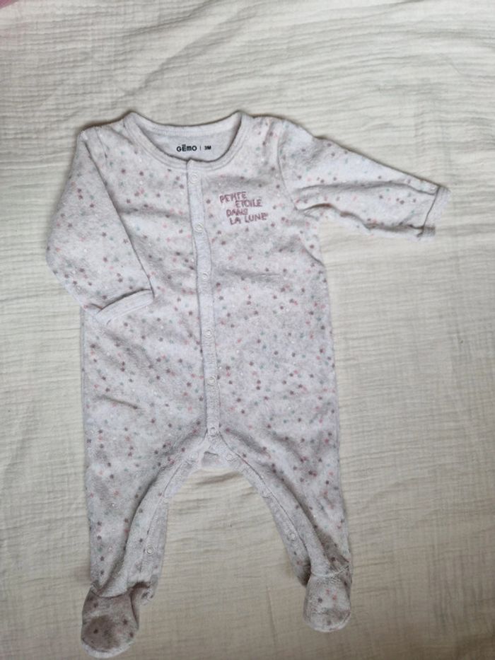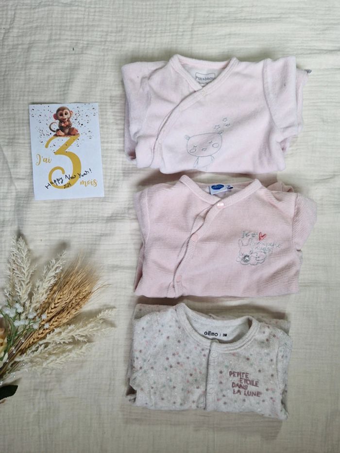 3 pyjamas en bon état 1 avec une petite taches sur la première pression voir dernière. Je l'ai vue au moment de prendre la photo je n'ai pas encore essayer de le détacher Dressing trié par taille et type d’article. Retrouvez tout sur mon profil via le lien ou ici pour tout le 3 mois : #bebe3moisjh49
