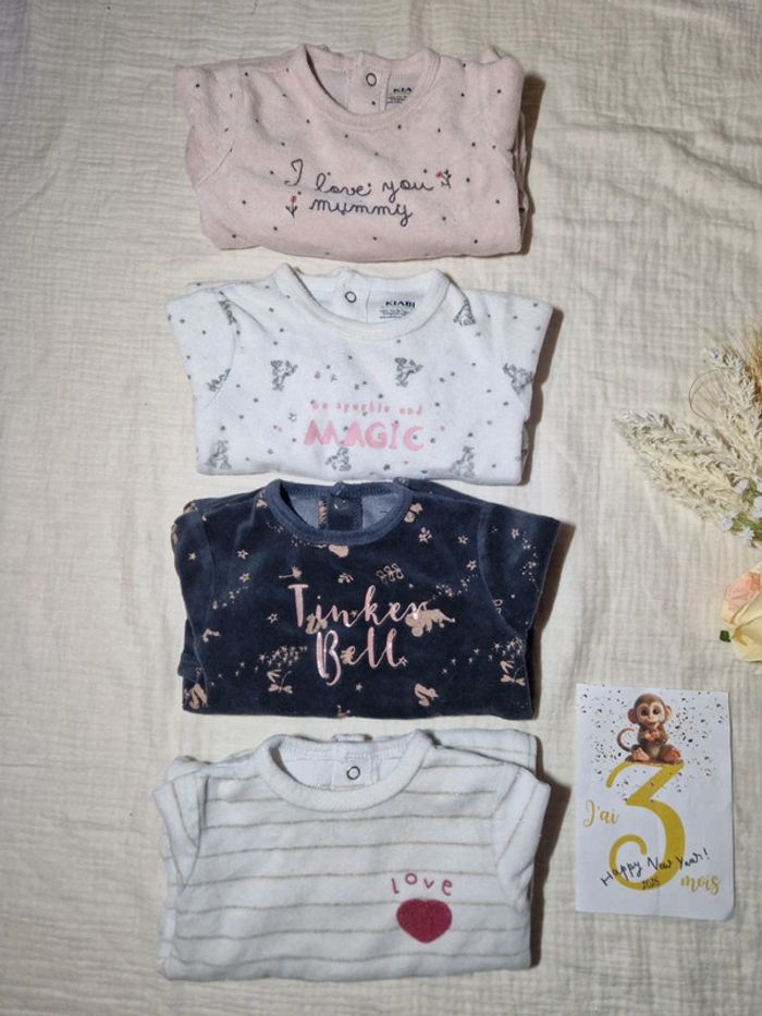 4 pyjamas qui s'attache derrière Dressing trié par taille et type d’article. Retrouvez tout sur mon profil via le lien. C'est ici pour tout le 3 mois : #bebe3moisjh49