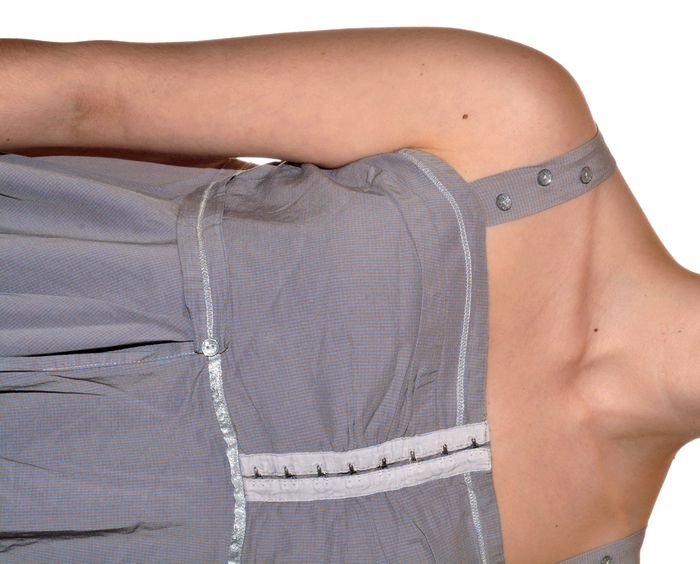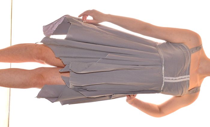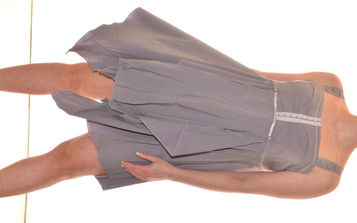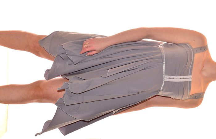 jolie robe fluide asymétrique taille 44 gris clair uni motifs carreaux bleu discrets col carré à bre - photo numéro 10