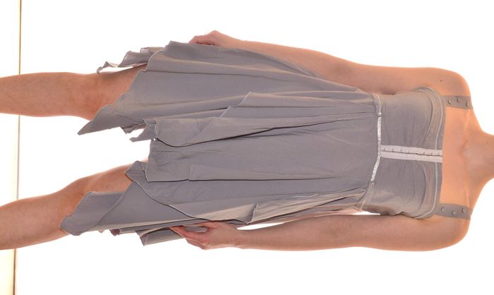 jolie robe fluide asymétrique taille 44 gris clair uni motifs carreaux bleu discrets col carré à bre - photo numéro 9