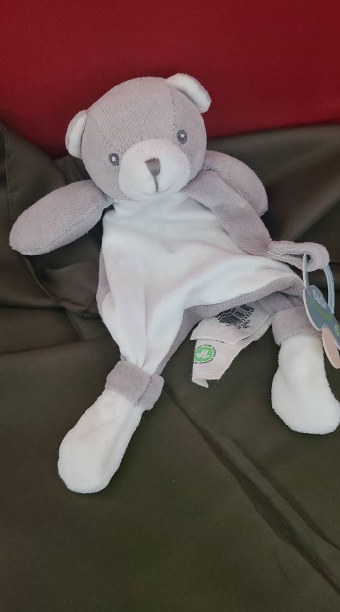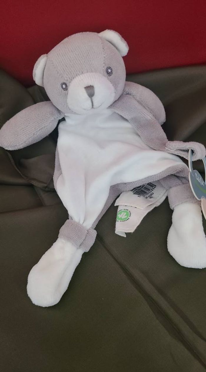 Baby'Nat - Coton BIO - Doudou Attache-sucette ours Gris 18 cm - photo numéro 1