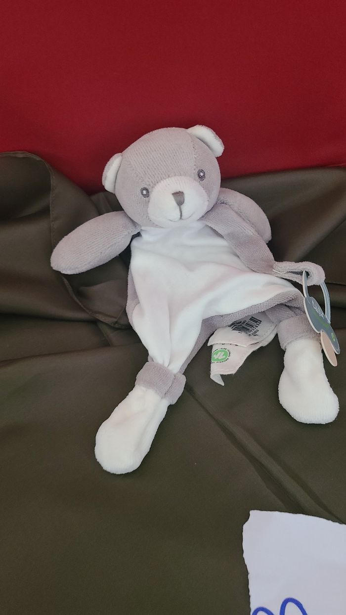 Baby'Nat - Coton BIO - Doudou Attache-sucette ours Gris 18 cm - photo numéro 4