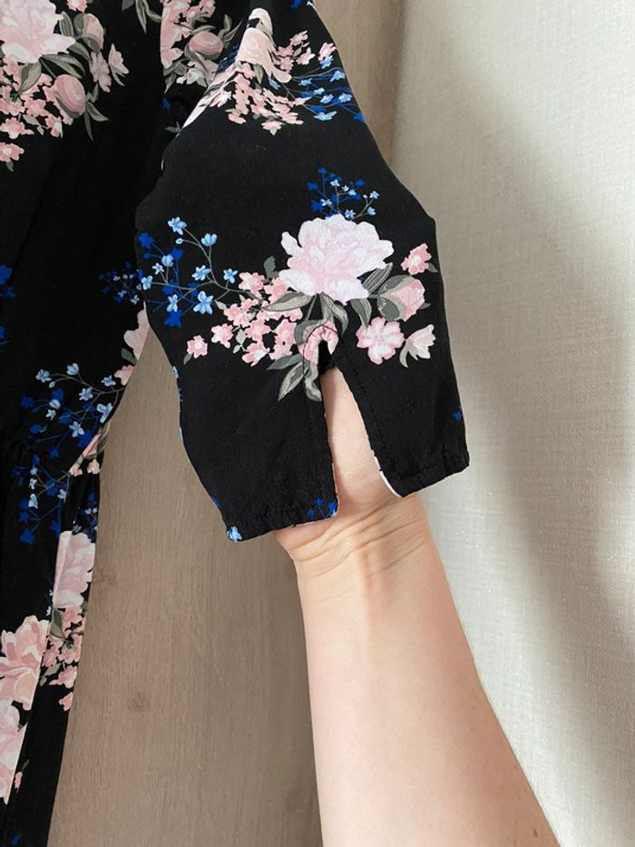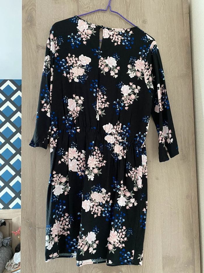 Magnifique robe à fleur manches 3/4 Coloris noir fleuris rose Marque : H&M Taille : 38 #femme38_latilma