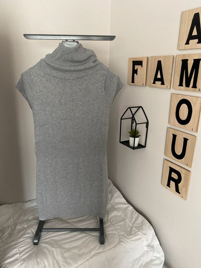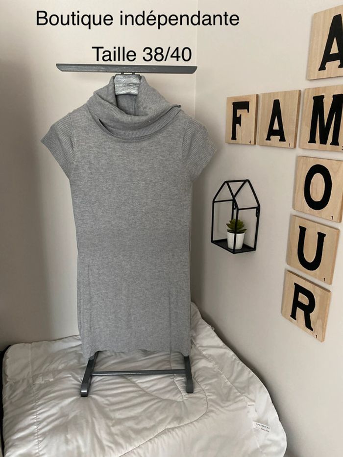 Robe en laine manche courte gros col Coloris gris Taille : correspond à un 38/40 #femme38_latilma #femme40_latilma