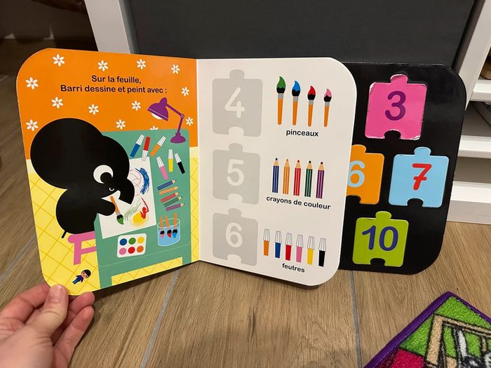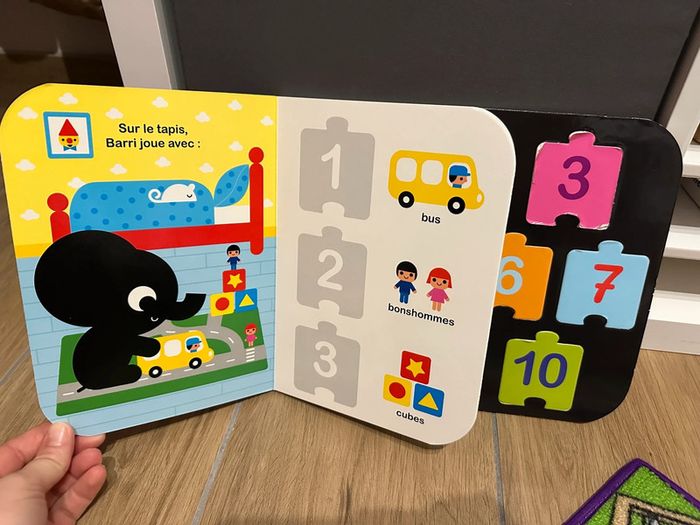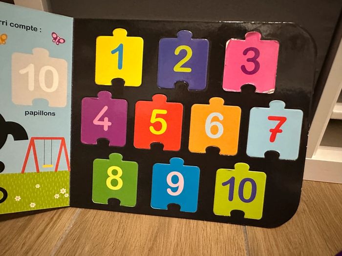 Un livre puzzle spécialement conçu pour les tout-petits dès 1 an, avec 10 pièces détachables à positionner sur les pages du livre et un puzzle des chiffres pour commencer à compter ! #jouetlatilma