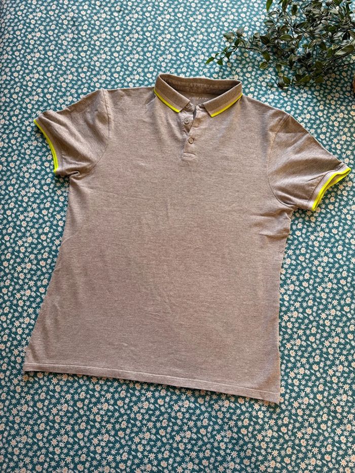 Polo col chemise manches courtes Couleur gris et liseré jaune « fluo » Taille : L Marque : primark #homme_latilma
