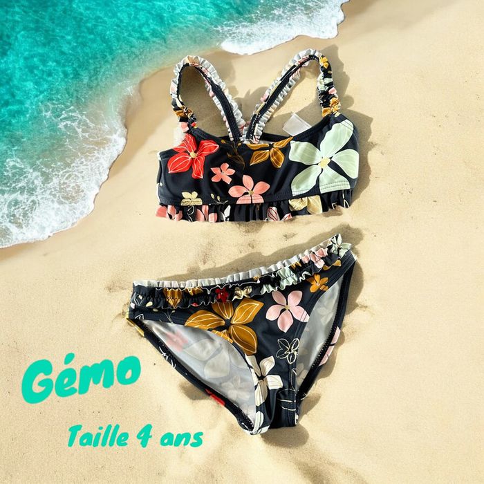 Maillot de bain 2 pièces Bleu marine et fleurs Marque : gemo Taille : 4 ans #fille4anslatilma