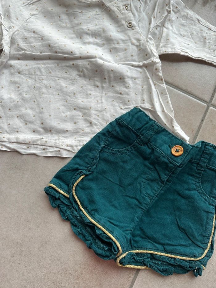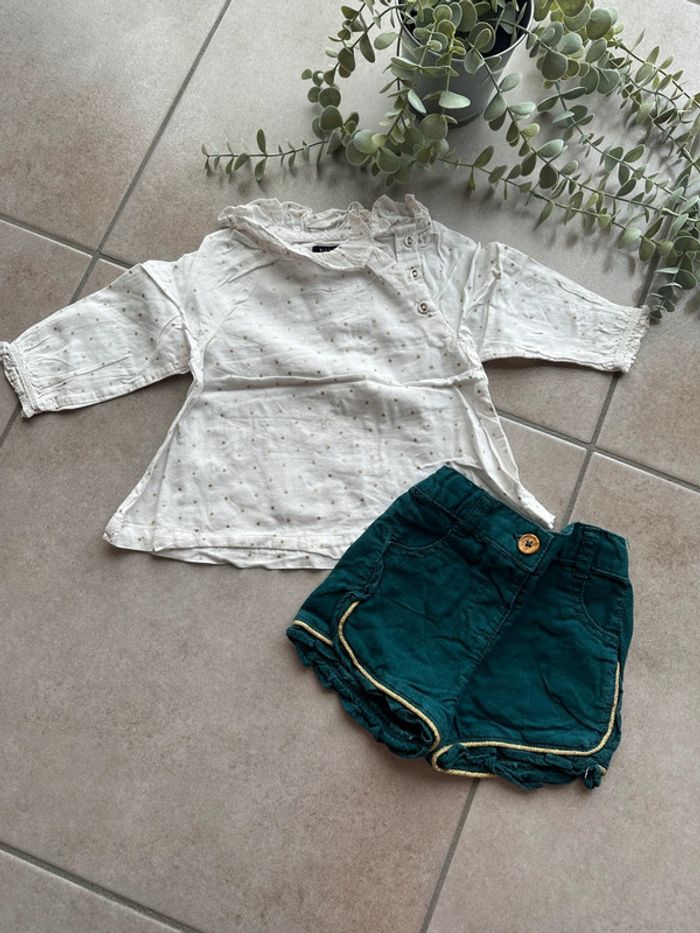 Ensemble bébé 6 mois Short kiabi 6 mois Blouse manches longues pois or kiabi #bebefille6moislatilma